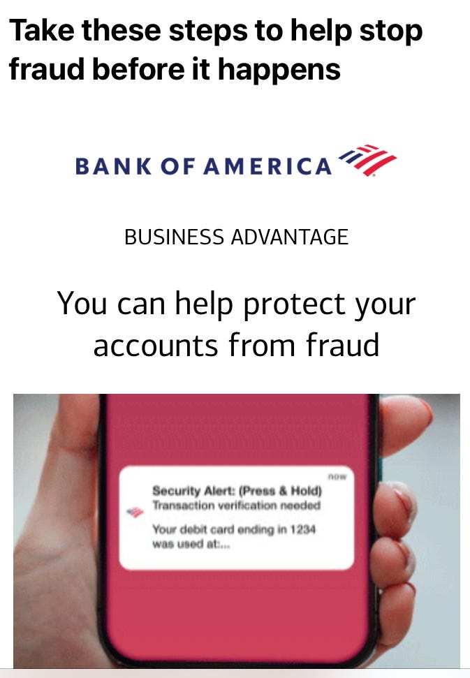 So, while BofA is sending out tips to help customers avoid fraud, it seems one of the best ways to avoid banking fraud is to NOT bank at Bank of America.